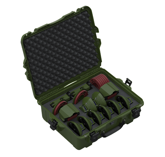 Le Pentagone© est livré 100% prêt pour son installation sans fil sur n’importe quel support et est aussitôt en fonctionnement. Il est automatiquement interconnecté avec les autres Pentagones dans un rayon de 1 km (0.6 mile). Un autre déploiement? On remet les Pentagones dans leur boîte de transport militaire et ils sont prêts pour affronter une autre mission!