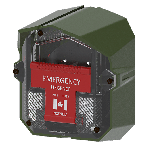 Sirène 520 Hz, lumières stroboscopiques, messages critiques (évacuation, rassemblement, etc.).
